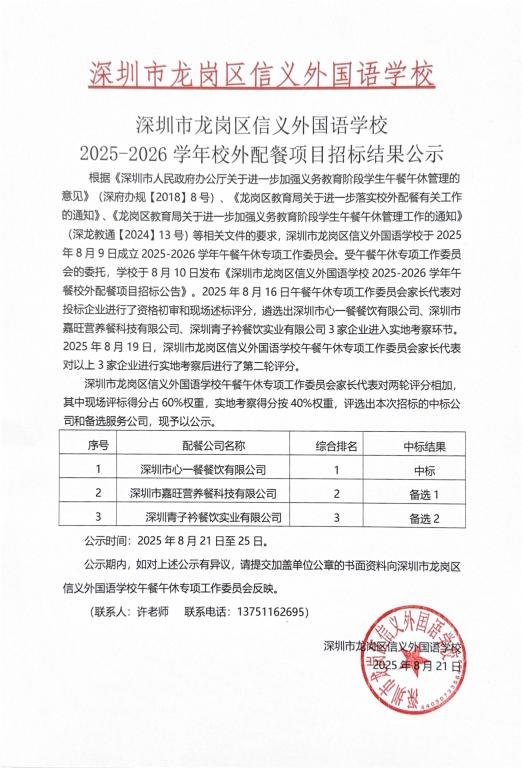 2025-2026学年校外配餐项目招标结果公示