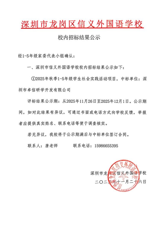 校内招标结果公示
